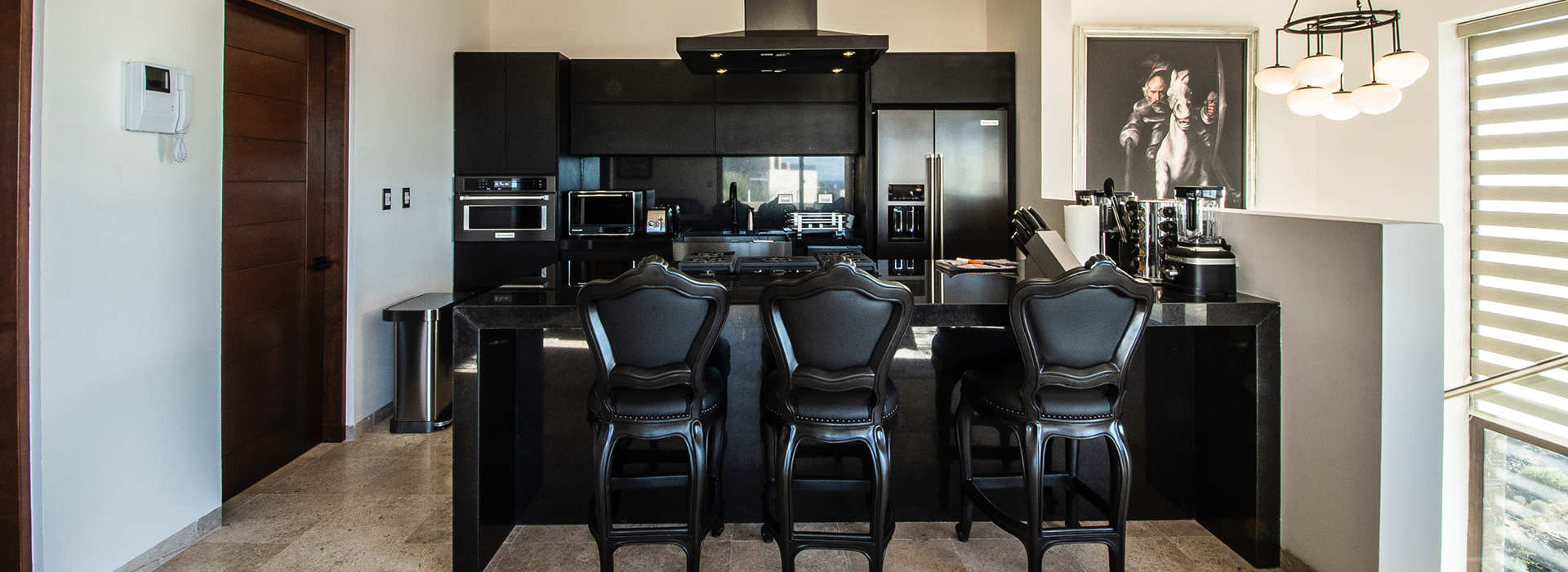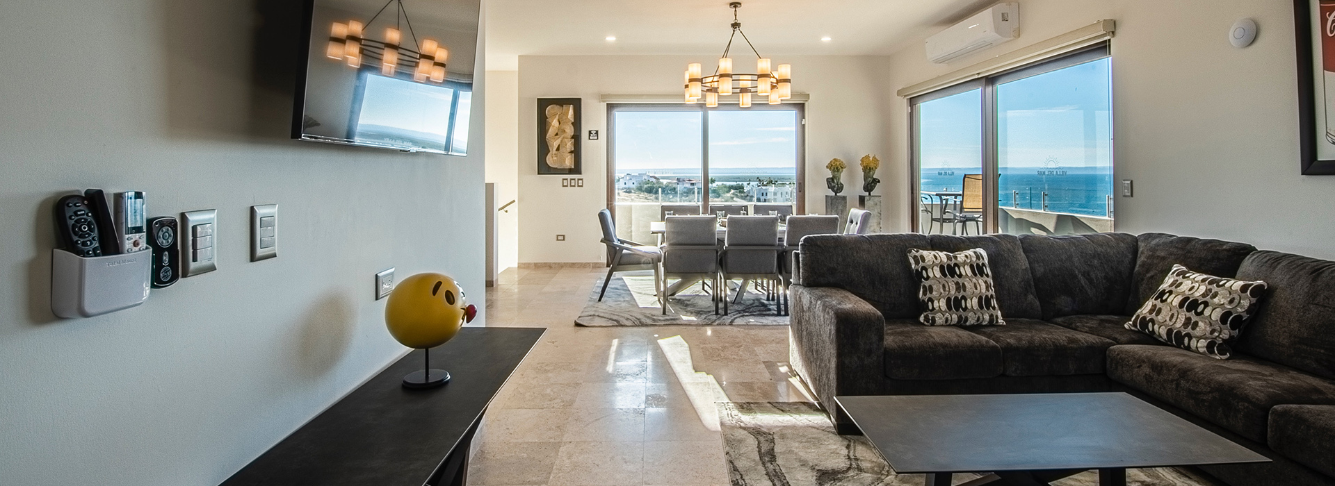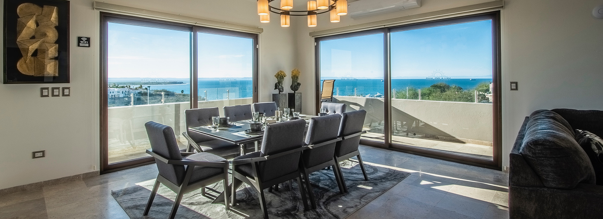 • Comedor con 9 sillas y vista panorámica a la bahía.
